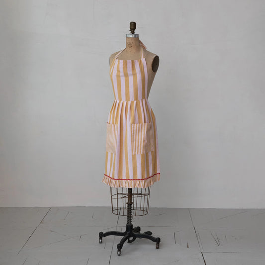 Creative Co-op - Striped Apron with Ruffle, Pockets, & Ric-Rac Trim