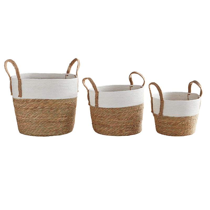 These trendy baskets are handy for home or office storage solution. The simple design and natural colors add versatility and style to any space.