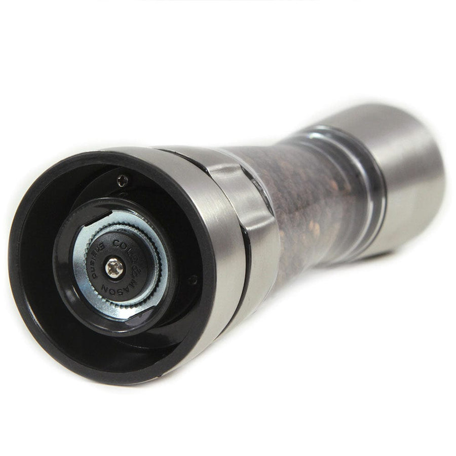 - High quality clear acrylic pepper mill with a stylish stainless steel finish