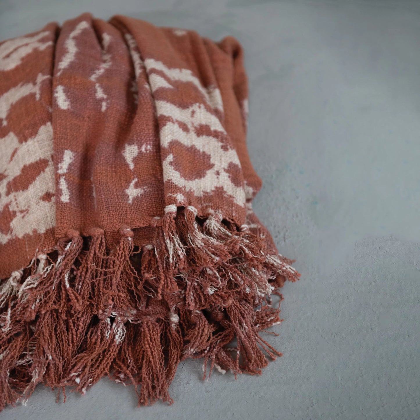 Stay cozy on chilly nights with this gorgeous blanket. The woven cotton slub gives it a super soft and luxurious feel that only gets better with each wash. The rich turmeric hues scattered with creamy accents from the tie-dye design make it a lovely piece to drape over the chair or couch when not in use.