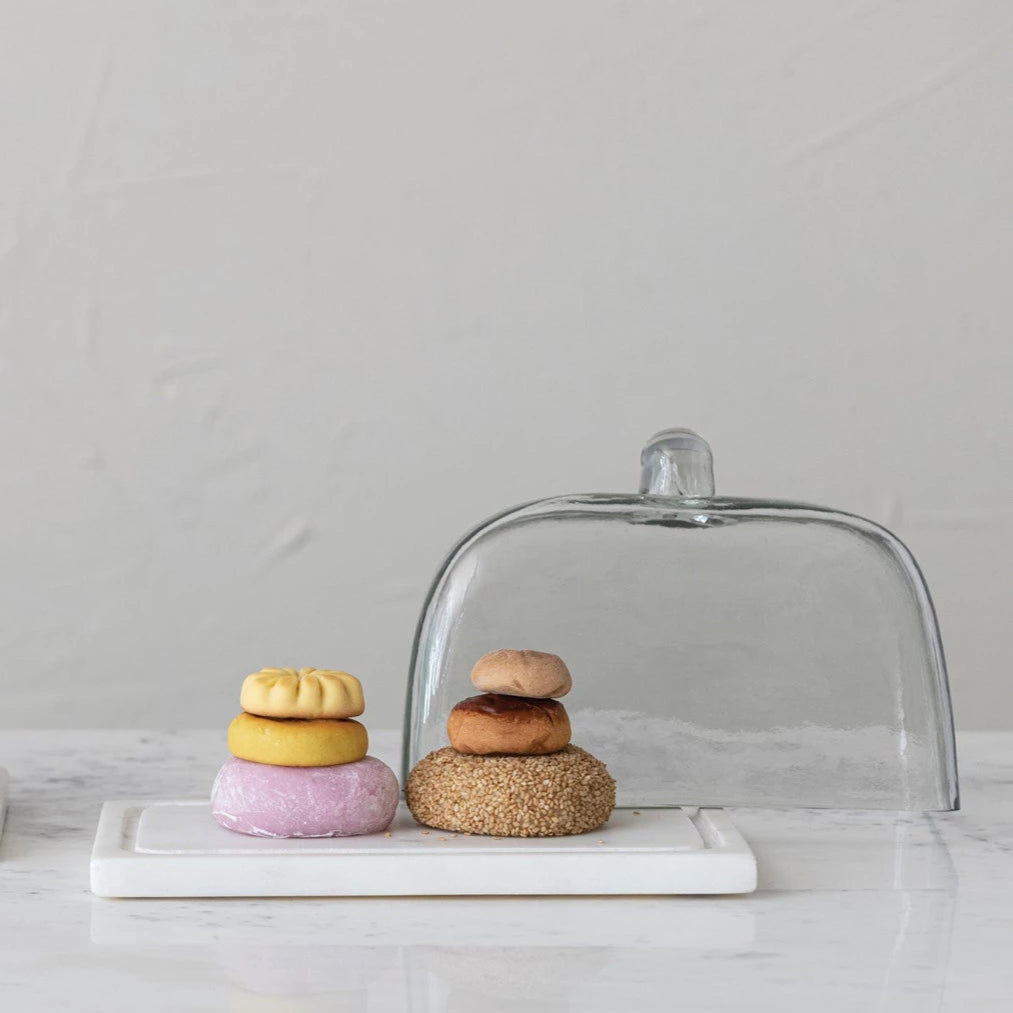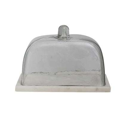 Creative Co-op - Glass Cloche with White Marble Base Set, Rectangle