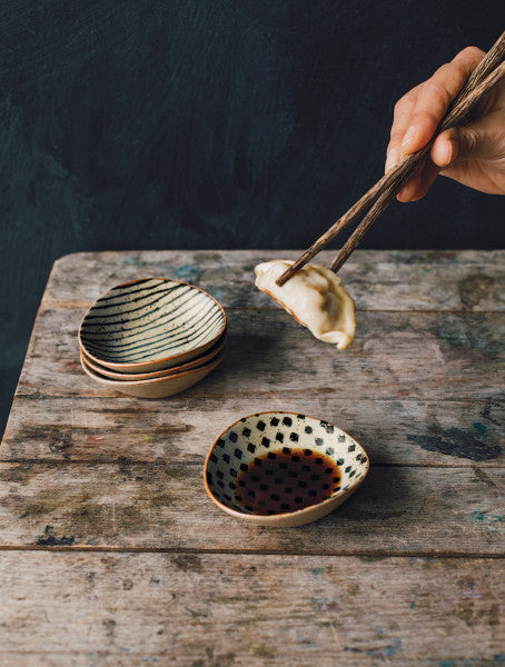 The muted colors and organic shapes of these wonderful bowls will look great with any decor and are perfect for serving dips, sauces, and sides or for use in kitchen prep. The various patterns are simple yet fun making them the perfect little jewelry dish. When not in use they look great stacked or displayed on a shelf or in the hutch.
