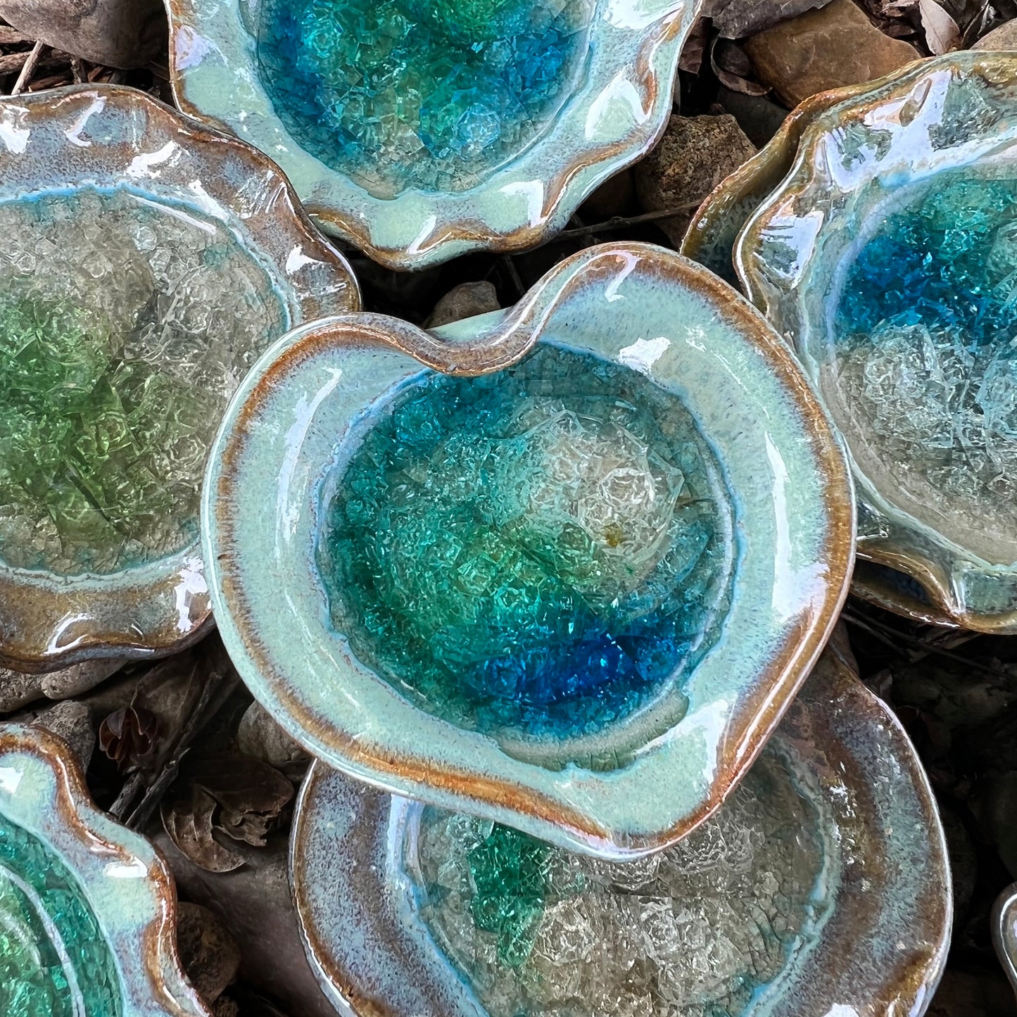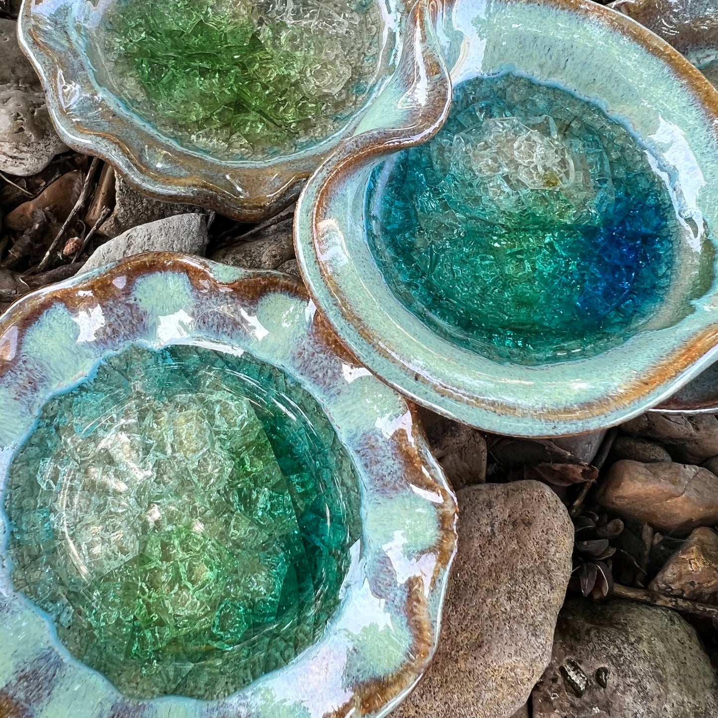 Down to Earth Pottery - Crackled Glass Little Dish, Minty Greens