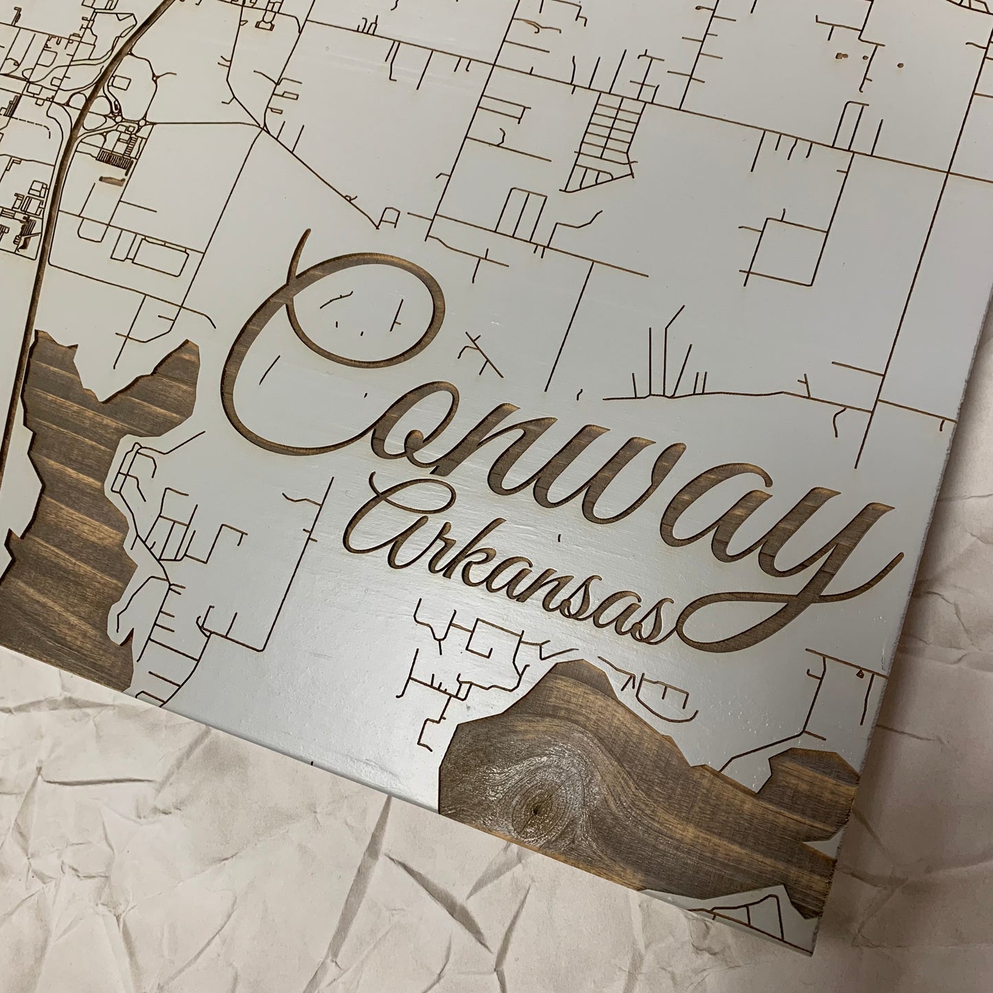 Fire & Pine - Burnt Wood Map of Conway, Grey