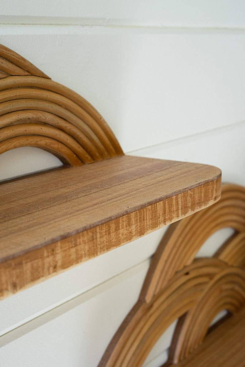 A functional piece of art, this wonderful wall shelf has a beautiful background pattern of alternating arches. It is the perfect spot for displaying photos, plants, keepsakes, and more!