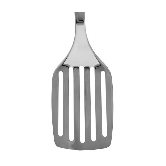Perfect for turning burgers, eggs, or veggies, this slotted turner is made from professional gauge, high polish stainless steel with solid filled handles that guarantee a tight water seal.