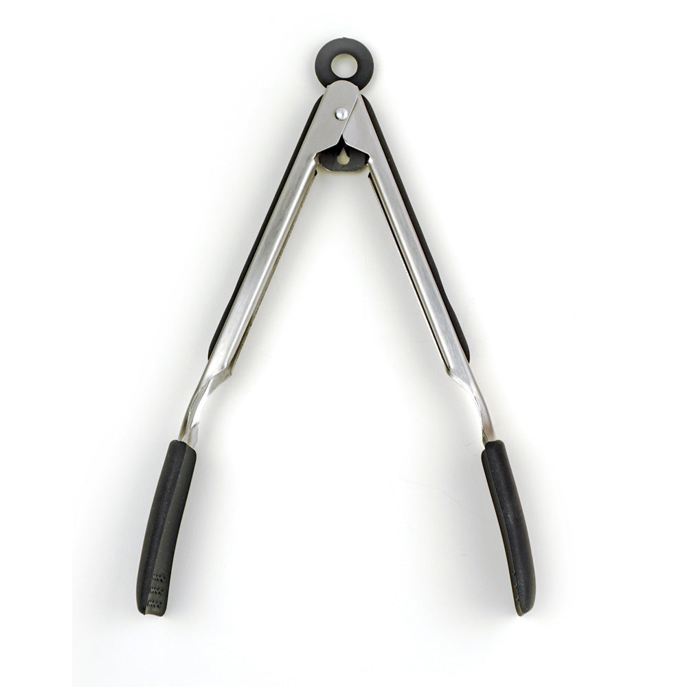 Ideal for nonstick cookware, these tongs have textured ridges to grab and hold food. These silicone and stainless steel tongs are heat safe to 400°F / 200° C and easily lock & unlock by pulling the round ring on the end.