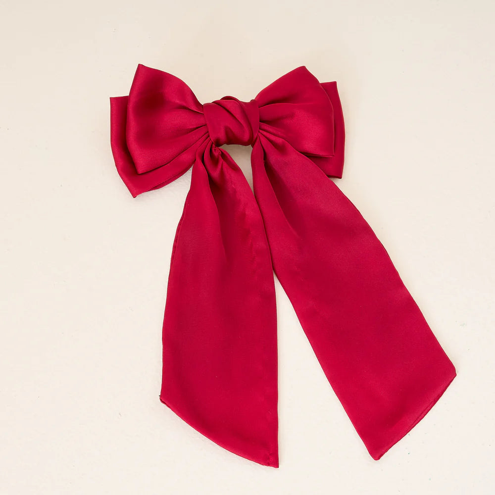 Add timeless style and charm to any outfit with this gorgeous, rich ruby red hair bow. The double bow is made of satin that adds a sophisticated allure to any hairstyle. A satin bow is perfect for every occasion, whether it's a relaxed day out or a glamorous event.